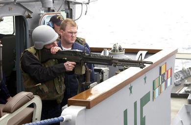 | Keywords: US Navy 040206-N-9288T-086 Gunner's Mate 2nd Class Jonathan Carlton, from Wolf Creek, Ore., observes a shipmate during small arms fire with a mounted M60 7.62mm machine gun.jpg en Pacific Ocean Feb 6 2004 - Gunner's Mate 2nd Class Jonathan Carlton from Wolf Creek Ore observes a shipmate during small arms fire with a mounted M60 7 62mm machine gun from the signal bridge aboard the guided missile cruiser USS Vincennes CG 49 while underway in the Pacific Ocean Vincennes is participating in Multi-Sail a combat readiness exercise in the Okinawa operational area It's designed to complete Surface Force Training Manual Requirements and to exercise participants in a multi-ship operational environment U S Navy photo by Photographer's Mate 2nd Class Brandon A Teeples RELEASED 2004-02-06 040206-N-9288T-086 Navy http //www navy mil/view_image asp id 11805 U S Navy photo by Photographer's Mate 2nd Class Brandon A Teeples PD-USGov-Military-Navy Aboard USS Vincennes CG-49 Gunner's Mate |
