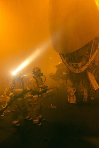 | Keywords: US Navy 040309-N-5319A-005 A fire fighting hose team advances on an EA-6B Prowler assigned to the Patriots of Electronic Attack Squadron One Four Zero (VAQ-140).jpg en Arabian Gulf Mar 9 2004 A fire fighting hose team advances on an EA-6B Prowler assigned to the Patriots of Electronic Attack Squadron One Four Zero VAQ-140 during an Improvised Explosive Device IED and Mass Causality exercise in the hangar bay aboard USS George Washington CVN 73 The Norfolk Va based nuclear aircraft carrier and Carrier Strike Group CSG are on a scheduled deployment in support of Operation Iraqi Freedom OIF U S Navy photo by Photographer s Mate 1st Class Brien Aho RELEASED 2004-03-09 040309-N-5319A-005 Navy http //www navy mil/view_image asp id 12506 U S Navy photo by Photographer s Mate 1st Class Brien Aho PD-USGov-Military-Navy Grumman EA-6 Prowler Aboard USS George Washington CVN-73 Firefighters Electronic Attack Squadron 140 United States Navy |