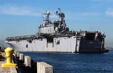 | Keywords: US Navy 040309-N-3236B-004 Sailors man the rails today as the amphibious assault ship USS Peleliu (LHA 5) approaches the pier following a six-and-a-half month deployment in support of the global war on terrorism.jpg en San Diego Mar 9 2004 - Sailors man the rails today as the amphibious assault ship USS Peleliu LHA 5 approaches the pier following a month deployment in support of the global war on terrorism USS Peleliu is one of five San Diego-based ships assigned to Expeditionary Strike Group One ESG-1 ESG-1 consists of Peleliu the amphibious transport dock USS Ogden LPD 5 the guided missile destroyer USS Decatur DDG 73 the guided missile Frigate USS Jarrett FFG 33 and the amphibious dock landing ship USS Germantown LSD 42 ESG-1 is capable of operating in shallow narrow waterways or the open ocean day and night in all weather conditions in support of marine or joint forces operating near-shore or deep inland U S Navy photo by Photographer's Mate 1st Class Ted Banks RELEASED 2004-03-09 040309-N-3236B-004 Navy http //www navy mil/view_image asp id 12555 U S Navy photo by Photographer's Mate 1st Class Ted Banks PD-USGov-Military-Navy Naval ship arrivals to Naval Base San Diego USS Germantown LSD-42 War on Terrorism Manning the rail in the United States Navy |