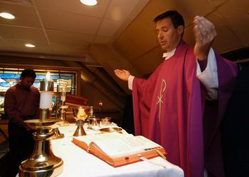 | Keywords: US Navy 040312-N-6278K-038 Navy Chaplain, Lt. Joe Coffey, of Philadelphia, Pa., reads a prayer during a church service in the ship^rsquo,s chapel aboard USS George Washington (CVN 73).jpg en Arabian Gulf Mar 12 2004 - Navy Chaplain Lt Joe Coffey of Philadelphia Pa reads a prayer during a church service in the ship s chapel aboard USS George Washington CVN 73 Father Coffey was selected as the Navy Chaplain of the Year The Norfolk Va -based nuclear powered aircraft carrier is on a scheduled deployment in support of Operation Iraqi Freedom OIF U S Navy photo by Photographer s Mate Airman Joan Kretschmer RELEASED 2004-03-12 040312-N-6278K-038 Navy http //www navy mil/view_image asp id 12646 U S Navy photo by Photographer s Mate Airman Joan Kretschmer PD-USGov-Military-Navy USS George Washington CVN-73 chapel United States Navy chaplains |