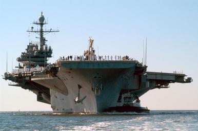 Keywords: US Navy 040317-N-6528K-089 USS John F. Kennedy (CV 67) arrives at Naval Air Station Pensacola, Fla., for a four-day port visit after completing a Composite Training Unit Exercise (COMTUEX) in the Gulf of Mexico.jpg en Pensacola Fla Mar 17 2004 USS John F Kennedy CV 67 arrives at Naval Air Station Pensacola Fla for a four-day port visit after completing a Composite Training Unit Exercise COMTUEX in the Gulf of Mexico COMPTUEX is an intermediate level exercise designed to forge the strike group into a cohesive fighting team and is a critical step in pre-deployment training During COMPTUEX more than a dozen ships and Carrier Air Wing Seventeen CVW-17 embarked on Kennedy conducted war game exercises using training ranges along the East Coast of the U S and the Gulf of Mexico The exercise took advantage of existing ranges under the Navy s comprehensive Training Resource Strategy TRS These ranges offer training facilities and realistic simulations better preparing U S Navy ships and Sailors to participate in the Global War on Terrorism U S Navy photo by Larry Kachelhofer RELEASED Mar 17 2004 040317-N-6528K-089 Navy http //www navy mil/view_image asp id 12774 U S Navy photo by Larry Kachelhofer PD-USGov-Military-Navy Aboard USS John F Kennedy CV-67 Naval Air Station Pensacola