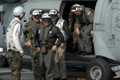 | Keywords: US Navy 040321-N-5821P-005 Army Gen. Leon Laporte, Commander, Combined Forces Command Korea, followed by Republic of Korea Gen. Il-Soon Shin, Deputy Commander, Combined Forces Command Korea, visit the aircraft carrier USS Kitty.jpg en 7th Fleet Area of Responsibility AOR Mar 21 2004 - Army Gen Leon Laporte Commander Combined Forces Command Korea followed by Republic of Korea Gen Il-Soon Shin Deputy Commander Combined Forces Command Korea visit the aircraft carrier USS Kitty Hawk CV 63 after the ship conducted a five-day port visit in Busan Korea Kitty Hawk is currently underway in the 7th Fleet area of responsibility AOR and is the U S Navy s only permanently forward-deployed aircraft carrier operating from Yokosuka Japan U S Navy photo by Photographer s Mate 3rd Class Jason T Poplin RELEASED 2004-03-21 040321-N-5821P-005 Navy http //www navy mil/view_image asp id 12868 U S Navy photo by Photographer s Mate 3rd Class Jason T Poplin PD-USGov-Military-Navy SH-60F Oceanhawk Helicopter Anti-Submarine Squadron 14 United States Navy Flight deck of USS Kitty Hawk CV-63 |