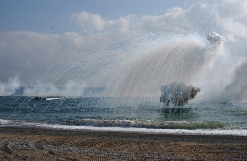 | Keywords: US Navy 040326-A-5968S-114 Republic of Korea and U.S. Marine Corps amphibious assault tanks provide cover for landing craft via a smoke screen during a simulated amphibious assault near Pohang, Korea.jpg en Pohang Beach Korea Mar 26 2004 - Republic of Korea and U S Marine Corps amphibious assault tanks provide cover for landing craft via a smoke screen during a simulated amphibious assault near Pohang Korea in support of Reception Staging Onward Movement and Integration and Foal Eagle 2004 The exercise is an annual U S and South Korea exercise tailored to evaluate command capabilities to receive U S Forces from outside Korea while teaching coaching and mentoring exercise participants U S Army photo by Staff Sgt George Sebastian RELEASED 2004-03-26 040326-A-5968S-114 Navy http //www navy mil/view_image asp id 13036 U S Navy photo PD-USGov-Military-Navy Images from US Navy location Pohang Beach Korea Foal Eagle 2004 Smoke screens |