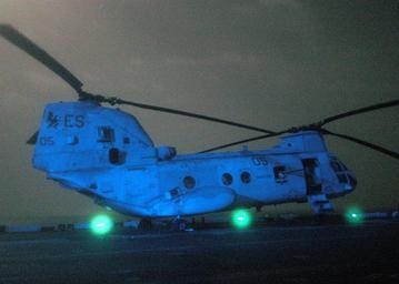 | Keywords: US Navy 040411-N-6380E-014 A Marine Corps CH-46E Sea Knight assigned to the Fighting Griffins of Marine Medium Helicopter Squadron Two Six Six (HMM-266) basks in the early morning glow of the moon.jpg en Indian Ocean Apr 11 2004 - A Marine Corps CH-46E Sea Knight assigned to the Fighting Griffins of Marine Medium Helicopter Squadron Two Six Six HMM-266 basks in the early morning glow of the moon and blue lights from the flight deck of the amphibious assault ship USS Wasp LHD 1 The 22nd Marine Expeditionary Unit Special Operations Capable and Wasp are currently on deployment as part of Expeditionary Strike Group Two ESG 2 in the 5th Fleet Area of Responsibility AOR U S Navy photo by Photographer's Mate 3rd Class Teresa J Ellison RELEASED 2004-04-11 040411-N-6380E-014 Navy http //www navy mil/view_image asp id 13389 U S Navy photo by Photographer's Mate 3rd Class Teresa J Ellison PD-USGov-Military-Navy USS Wasp LHD-1 flight deck CH-46 US Marine Corps |