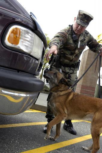 Keywords: US Navy 040420-N-6477M-036 Master-at-Arms 2nd Class Rodney Ware and his partner Military Working Dog, Tessa, conduct random vehicle inspections.jpg en Naval Station Everett Wa Apr 20 2004 - Master-at-Arms 2nd Class Rodney Ware and his partner Military Working Dog Tessa conduct random vehicle inspections at the front gates of Naval Station Everett The pair have been working together for three years enforcing the Navy's zero tolerance policy for drugs on Naval bases U S Navy photo by Photographer's Mate 2nd Class Eli J Medellin RELEASED 2004-04-20 040420-N-6477M-036 Navy http //www navy mil/view_image asp id 13494 U S Navy photo by Photographer's Mate 2nd Class Eli J Medellin PD-USGov-Military-Navy Naval Station Everett Master-at-arms Military working dogs of the United States Detection dogs Dogs sniffing Dogs and automobiles |