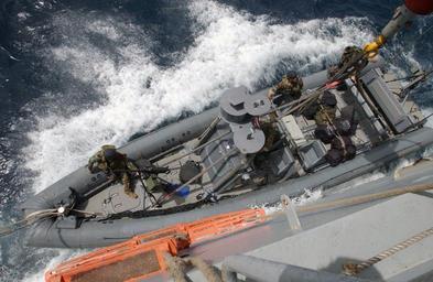 | Keywords: US Navy 040421-N-7586B-017 Members from Special Boat Team Twelve (SBT-12) make final preparations to a Rigid Hull Inflatable Boat (RHIB).jpg en Gulf of Oman Apr 21 2004 - Members from Special Boat Team Twelve SBT-12 make final preparations to a Rigid Hull Inflatable Boat RHIB as it is lowered into the water from the flight deck of USS Whidbey Island LSD 41 during Operation Enduring Freedom OEF The amphibious dock landing Ship Whidbey Island is deployed to the U S Central Command Area of Operation to support the Global War on Terrorism U S Navy photo by Photographer s Mate First Class Bart Bauer RELEASED 2004-04-21 040421-N-7586B-017 Navy http //www navy mil/view_image asp id 13607 U S Navy photo by Photographer s Mate First Class Bart Bauer PD-USGov-Military-Navy Rigid-hulled inflatable boats of US Navy Aboard USS Whidbey Island LSD-41 Special Warfare Combatant-craft Crewmen Special Boat Team 12 |