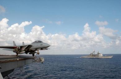 | Keywords: US Navy 040423-N-9851B-013 An F-14B Tomcat launches from the flight deck of USS Harry S. Truman (CVN 75) as the guided missile cruiser USS Monterey (CG 61) pulls near to observe.jpg en Atlantic Coast Apr 23 2004 - An F-14B Tomcat assigned to the Swordsmen of Fighter Squadron 32 VF-32 launches from the flight deck of USS Harry S Truman CVN 75 as the guided missile cruiser USS Monterey CG 61 pulls near to observe Truman is currently undergoing her Tailored Ship's Training Availability TSTA exercise off the Atlantic Coast U S Navy photo by Photographer's Mate 2nd Class John L Beeman RELEASED 2004-04-23 040423-N-9851B-013 Navy http //www navy mil/view_image asp id 13600 U S Navy photo by Photographer's Mate 2nd Class John L Beeman PD-USGov-Military-Navy F-14B Tomcat in flight F-14 Tomcat aircraft carrier launches Fighter Squadron 32 United States Navy Aboard USS Harry S Truman CVN-75 USS Monterey CG-61 |