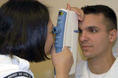 | Keywords: US Navy 040503-N-8770A-001 Hospital Corpsman 3rd Class Olivia Casino, of Hawaii, uses the new Puls-Air to examine the eyes of Hospitalman Chris Mikles.jpg en Naval Air Station Whidbey Island Wash May 3 2004 - Hospital Corpsman 3rd Class Olivia Casino of Hawaii uses the new Puls-Air to examine the eyes of Hospitalman Chris Mikles The Puls-Air is used to measure the pressure in the eyes and to check for cataracts Petty Officer Casino and Hospitalman Mikles are both stationed at Naval Hospital Oak Harbor U S Navy photo by Photographer's Mate 3rd Class Elizabeth Acosta RELEASED 2004-05-03 040503-N-8770A-001 Navy http //www navy mil/view_image asp id 13910 U S Navy photo by Photographer's Mate 3rd Class Elizabeth Acosta PD-USGov-Military-Navy Naval Air Station Whidbey Island |