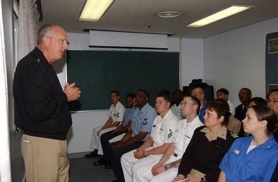 | Keywords: US Navy 040504-N-0435H-052 Vice Adm. Michael L. Cowan, Surgeon General of the Navy and Chief, Bureau of Medicine and Surgery, visits the Branch Medical and Dental Clinics aboard Naval Air Facility Atsugi.jpg en Naval Air Facility Atsugi Japan May 4 2004 - Vice Adm Michael L Cowan Surgeon General of the Navy and Chief Bureau of Medicine and Surgery visits the Branch Medical and Dental Clinics aboard Naval Air Facility Atsugi and speaks to personnel about the future of Naval Medicine Visiting the Medical and Dental Clinics is one way VADM Cowan can ensure quality health delivery to all service members and their families U S Navy photo by Photographer's Mate 2nd Class Tracy Hull RELEASED 2004-05-04 040504-N-0435H-052 Navy http //www navy mil/view_image asp id 13864 U S Navy photo by Photographer's Mate 2nd Class Tracy Hull PD-USGov-Military-Navy Images from US Navy location Atsugi Japan Bureau of Medicine and Surgery Michael L Cowan |