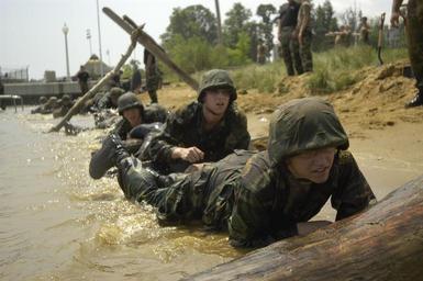 Keywords: US Navy 040518-N-9693M-014 Midshipmen crawl along a beach through obstacles as part of Sea Trials.jpg en U S Naval Academy May 18 2004 - Midshipmen crawl along a beach through obstacles as part of Sea Trials The capstone event places fourth-class midshipmen in a physically and mentally demanding environment that instills in them the values of good leadership teamwork and perseverance Sea Trials allows the fourth class to participate in a memorable and worthwhile event that teaches them much about their own abilities and limitations as well as the advantages of working as a team U S Navy photo by Photographer's Mate 2nd Class Damon J Moritz RELEASED 2004-05-18 040518-N-9693M-014 Navy http //www navy mil/view_image asp id 14172 U S Navy photo by Photographer's Mate 2nd Class Damon J Moritz PD-USGov-Military-Navy Sea Trials