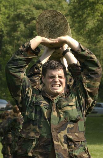 Keywords: US Navy 040518-N-9693M-017 A Midshipman grimaces as he and his squad lift a log above their heads as part of Sea Trials.jpg en U S Naval Academy May 18 2004 - A Midshipman grimaces as he and his squad lift a log above their heads as part of Sea Trials The capstone event places fourth-class midshipmen in a physically and mentally demanding environment that instills in them the values of good leadership teamwork and perseverance Sea Trials allows the fourth class to participate in a memorable and worthwhile event that teaches them much about their own abilities and limitations as well as the advantages of working as a team U S Navy photo by Photographer's Mate 2nd Class Damon J Moritz RELEASED 2004-05-18 040518-N-9693M-017 Navy http //www navy mil/view_image asp id 14175 U S Navy photo by Photographer's Mate 2nd Class Damon J Moritz PD-USGov-Military-Navy Sea Trials |
