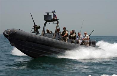 | Keywords: US Navy 040520-N-7586B-057 Riding in a Rigid Hull Inflateable Boat (RHIB), Secretary of the Navy, Gordon R. England, is transported from the Al Basrah Oil Terminal (ABOT) to the coastal patrol ship USS Chinook (PC 9).jpg en Arabian Gulf May 20 2004 - Riding in a Rigid Hull Inflateable Boat RHIB Secretary of the Navy Gordon R England is transported from the Al Basrah Oil Terminal ABOT to the coastal patrol ship USS Chinook PC 9 by members assigned to Special Boat Team Twelve SBT-12 Secretary England expressed his support during a scheduled tour of deployed locations speaking with the troops stationed in the U S Central Command's Area of Responsibility U S Navy photo by Photographer's Mate 1st Class Bart A Bauer RELEASED 2004-05-20 040520-N-7586B-057 Navy http //www navy mil/view_image asp id 14479 U S Navy photo by Photographer's Mate 1st Class Bart A Bauer PD-USGov-Military-Navy Al Basrah Oil Terminal USS Chinook PC-9 Rigid-hulled inflatable boats of US Navy Gordon R England Special Warfare Combatant-craft Crewmen Basra People of Basra Special Boat Team 12 |