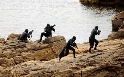 | Keywords: US Navy 040525-N-3953L-246 Navy SEALs practice Over The Beach evolutions during a training exercise.jpg en REMOTE TRAINING FACILITY May 25 2004 - Navy SEALs practice Over The Beach evolutions during a training exercise SEALs are known for their ability to meet the mission objective in a clandestine way Navy SEALs are maritime special operations forces that strike from the sea air and land They operate in small numbers infiltrating their objective areas by fixed-wing aircraft helicopters Navy surface ships combatant craft and submarines SEALs have the ability to conduct a variety of high-risk missions utilizing unconventional warfare direct action special reconnaissance combat search and rescue diversionary attacks and precision strikes U S Navy photo by Photographer's Mate 2nd Class Eric S Logsdon RELEASED 2004-05-25 040525-N-3953L-246 Navy http //www navy mil/view_image asp id 51693 U S Navy photo by Photographer's Mate 2nd Class Eric S Logsdon PD-USGov-Military-Navy Images from US Navy location REMOTE TRAINING FACILITY United States Navy SEALs Over-The-Beach |