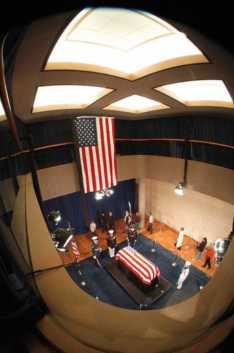 Keywords: US Navy 040608-N-8164H-021 Mourners pay their respects to former President Ronald Reagan as his casket lays in repose at the Ronald Reagan Presidential Library in Simi Valley, Calif.jpg en Simi Valley Calif Jun 9 2004 - Mourners pay their respects to former President Ronald Reagan as his casket lays in repose at the Ronald Reagan Presidential Library in Simi Valley Calif Reagan's body will be flown to Washington D C where it will lie in state in the Capitol Rotunda A state funeral will be conducted late Friday morning at the Washington National Cathedral where President Bush will give the eulogy On Friday June 11 President Reagan's body will return to Calif for a private burial service U S Navy photo by Photographer's Mate 3rd Class Shane M Hadlick RELEASED 2004-06-09 040608-N-8164H-021 Navy http //www navy mil/view_image asp id 14785 U S Navy photo by Photographer's Mate 3rd Class Shane M Hadlick PD-USGov-Military-Navy Ronald Reagan Tomb 2004 |