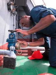 | Keywords: US Navy 040609-N-2893B-002 Senior Chief Damage Controlman William Bridgeforth tours the Russian Navy frigate Neustrashimy (F 712).jpg en Baltic Sea Jun 9 2004 - Senior Chief Damage Controlman William Bridgeforth examines a fireplug and other firefighting equipment on the flight deck of the Russian Navy frigate Neustrashimy F 712 Senior Chief Bridgeforth assigned to the guided missile cruiser USS San Jacinto CG 56 spent a day aboard the Russian warship during Baltic Operations 2004 The 32nd annual BALTOPS commenced its underway portion June 7 when 39 ships from 13 countries set sail from Gdynia Poland Sea air and land forces will practice surface warfare and air defense gunnery exercises replenishment at sea undersea warfare radar tracking mine countermeasures seamanship and maritime interdiction operations during the exercise which concludes in Kiel Germany U S Navy photo by Journalist 1st Class Eric Brown RELEASED 2004-06-09 040609-N-2893B-002 Navy http //www navy mil/view_image asp id 15016 U S Navy photo by Journalist 1st Class Eric Brown PD-USGov-Military-Navy BALTOPS 2004 Damage Controlman USS San Jacinto CG-56 Neustrashimyy ship 1993 |