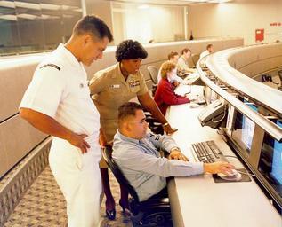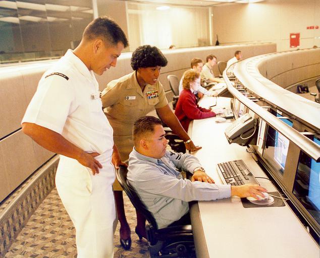 | Keywords: US Navy 040614-N-7952W-001 Information Systems Technician 1st Class Thomas Dull, left, Lt. Stella Nealy, center, and Information Systems Technician 2nd Class Eduardo Pallanes study a computer monitor at Naval Network and Space.jpg en San Diego Calif June 14 2004 Information Systems Technician 1st Class Thomas Dull left Lt Stella Nealy center and Information Systems Technician 2nd Class Eduardo Pallanes study a computer monitor at Naval Network and Space Operations Command Petty Officer Dull recently received the Navy Marine Corps Internet NMCI Innovation Award by the Navy s NMCI Program Office The award presented during the NMCI Industry Symposium recognized individuals who have created solutions that have enhanced transition to the NMCI environment or leveraged NMCI capabilities to achieve enhanced efficiencies Dull serves as Leading Petty Officer for the training department with Naval Network and Space Operations Command s NMCI Detachment San Diego Calif U S Navy photo by Gary R Wagner RELEASED 2004-06-14 040614-N-7952W-001 Navy http //www navy mil/view_image asp id 18291 U S Navy photo by Gary R Wagner PD-USGov-Military-Navy Naval Base San Diego in the 2000s Information Systems Technician United States Navy People using computers in the 2000s |