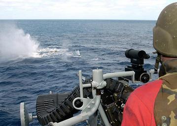 | Keywords: US Navy 040616-N-2972R-015 Gunner's Mate 3rd Class Marc Gent, from Norman, Okla., fires at target boxes using an MK-38 25mm Machine Gun System.jpg en Mediterranean Sea Jun 16 2004 - Gunner's Mate 3rd Class Marc Gent from Norman Okla fires at target boxes using an MK-38 25mm Machine Gun System MGS aboard the amphibious assault ship USS Kearsarge LHD 3 The 25mm MGS is an automatic gun system that provides ships with a defensive and offensive gunfire capability for the engagement of a variety of surface targets It is designed to provide close range defense against patrol boats swimmers floating mines and various targets ashore including enemy personnel lightly armored vehicles and terrorist threats Kearsarge is surge deployed to transport elements of the 24th Marine Expeditionary Unit MEU to the Central Command Area of Responsibility AOR in support of Operation Iraqi Freedom OIF and the global war on terrorism U S Navy photo by Photographer's Mate 3rd Class Angel Roman-Otero RELEASED 2004-06-16 040616-N-2972R-015 Navy http //www navy mil/view_image asp id 15259 U S Navy photo by Photographer's Mate 3rd Class Angel Roman-Otero PD-USGov-Military-Navy Mk 38 25mm chain gun Aboard USS Kearsarge LHD-3 Gunner's Mate Shooting |