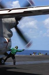 | Keywords: US Navy 040617-N-4953E-013 Aviation Boatswain's Mate 3rd Class Timothy Stephenson pushes the launch bar down into the catapult shuttle as a C-2A Greyhound prepares for launch.jpg en Pacific Ocean June 17 2004 - Aviation Boatswain's Mate 3rd Class Timothy Stephenson pushes the launch bar down into the catapult shuttle as a C-2A Greyhound assigned to the Rawhides of Fleet Logistics Squadron Four Zero VRC-40 prepares for launch aboard USS Harry S Truman CVN 75 Truman is one of seven aircraft carriers involved in the Summer Pulse 2004 Summer Pulse 2004 is the simultaneous deployment of seven aircraft strike groups CSGs demonstrating the ability of the Navy to provide credible combat across the globe in five theaters with other U S allied and coalition military forces Summer Pulse is the Navy's first deployment under its new Fleet Response Plan FRP U S Navy photo by Photographer's Mate 2nd Class Danny Ewing Jr RELEASED For more information go to <a href http //www cffc navy mil/summerpulse04 htm Target _BLANK >www cffc navy mil/summerpulse04 htm</a> 2004-06-17 040617-N-4953E-013 Navy http //www navy mil/view_image asp id 15605 U S Navy photo by Photographer's Mate 2nd Class Danny Ewing Jr PD-USGov-Military-Navy Aviation Boatswain's Mates Aboard USS Harry S Truman CVN-75 Grumman C-2 Greyhound Fleet Logistics Support Squadron 40 United States Navy Photographs by Danny Ewing Jr |