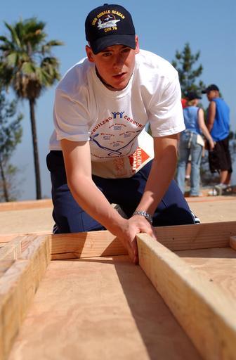 Keywords: US Navy 040623-N-8252B-067 Airman Apprentice Grant Griffith, from Seattle, Wash., assigned to the Nimitz-class aircraft carrier USS Ronald Reagan (CVN 76), builds a wall.jpg en San Pasqual Calif June 23 2004 - Airman Apprentice Grant Griffith from Seattle Wash assigned to the Nimitz-class aircraft carrier USS Ronald Reagan CVN 76 builds a wall to help the non-profit group Habitat for Humanity build homes for families who lost their houses in the 2003 Southern California Wildfires The ship is currently in transit around South America and is scheduled to arrive in her new homeport of San Diego Calif in late July Airman Griffith is part of an advance team of Reagan personnel making the necessary preparations for the ships arrival U S Navy photo by Photographer s Mate 2nd Class Katrina L Beeler RELEASED 2004-06-23 040623-N-8252B-067 Navy http //www navy mil/view_image asp id 15501 U S Navy photo by Photographer s Mate 2nd Class Katrina L Beeler PD-USGov-Military-Navy Images from US Navy location San Pasqual Calif |
