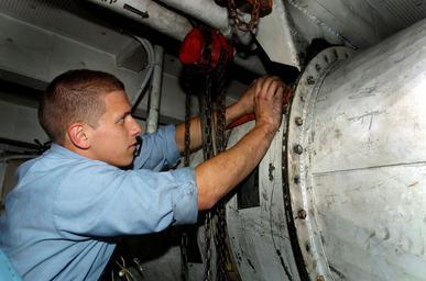 | Keywords: US Navy 040624-N-6213R-022 Electrician's Mate 3rd Class Nick Thorpe of Stockton, Calif., secures a ventilation motor in a fan room following repair work aboard the Nimitz-class aircraft carrier USS John C. Stennis (CVN 74).jpg en Pacific Ocean June 24 2004 - Electrician's Mate 3rd Class Nick Thorpe of Stockton Calif secures a ventilation motor in a fan room following repair work aboard the Nimitz-class aircraft carrier USS John C Stennis CVN 74 Stennis and embarked Carrier Air Wing Fourteen CVW-14 are currently at sea participating in a regularly scheduled deployment U S Navy photo by Photographer's Mate 3rd Class Mark J Rebilas RELEASED 2004-06-24 040624-N-6213R-022 Navy http //www navy mil/view_image asp id 15446 U S Navy photo by Photographer's Mate 3rd Class Mark J Rebilas PD-USGov-Military-Navy Aboard USS John C Stennis CVN-74 Electrician's Mate Photographs by Mark J Rebilas |