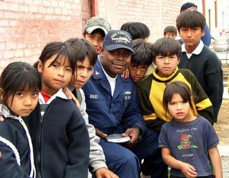 | Keywords: US Navy 040707-N-8053T-012 Boatswain Mate 1st Class Nikita Bibbs from Houston, Texas, assigned to the amphibious dock landing ship USS Tortuga (LSD 46) entertains some of the children from the village.jpg en Carquin Peru July 07 2004 - Boatswain Mate 1st Class Nikita Bibbs from Houston Texas assigned to the amphibious dock landing ship USS Tortuga LSD 46 entertains some of the children from the village with his CD player while attempting to communicate in Spanish Eleven partner nations from the U S and Latin America are supporting the largest multilateral exercise in the Southern Hemisphere Held Since 1959 UNITAS aims to unite military forces throughout the Americas with bilateral and multilateral shipboard amphibious and in-port exercises and operations UNITAS improves operational readiness and interoperability of U S and South American naval coast guard and marine forces while promoting friendship professionalism and understanding among participants U S Navy photo by Hospital Corpsman 1st Class Kristen Thorstenson RELEASED 2004-07-07 040707-N-8053T-012 Navy http //www navy mil/view_image asp id 16010 U S Navy photo by Hospital Corpsman 1st Class Kristen Thorstenson PD-USGov-Military-Navy Children of Peru Lima Region Carquín Aboard USS Tortuga LSD-46 |