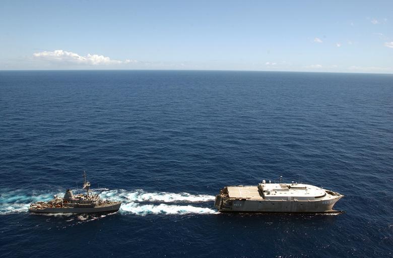 Keywords: US Navy 040710-N-6551H-142 The High Speed Vessel (HSV) 2 Swift refuels the mine warfare ship USS Avenger (MCM 1).jpg en Pacific Ocean July 10 2004 The High Speed Vessel HSV 2 Swift refuels the mine warfare ship USS Avenger MCM 1 off the coast of Hawaii during exercise Rim of the Pacific RIMPAC 2004 Swift is a wave-piercing aluminum-hulled catamaran that can move at speeds greater than 45 knots With a draft allowing it to navigate in only 12 feet of water it can easily maneuver in and out of littoral environments RIMPAC is the largest international maritime exercise in the waters around the Hawaiian Islands This year s exercise includes seven participating nations; Australia Canada Chile Japan South Korea United Kingdom and United States RIMPAC is intended to enhance the tactical proficiency of participating units in a wide array of combined operations at sea while enhancing stability in the Pacific Rim region U S Navy photo by Photographer's Mate 1st Class Michelle R Hammond RELEASED For more information go to <a href http //www cpf navy mil/RIMPAC2004 Target _BLANK >http //www cpf navy mil/RIMPAC2004</a>/ 2004-07-10 040710-N-6551H-142 Navy http //www navy mil/view_image asp id 15982 U S Navy photo by Photographer's Mate 1st Class Michelle R Hammond PD-USGov-Military-Navy General views of HSV-2 Swift Ships facing right Astern refueling fueling-at-sea USS Avenger MCM-1 RIMPAC 2004 |