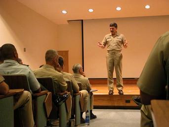 | Keywords: US Navy 040712-N-0962S-002 Master Chief Petty Officer of the Navy (MCPON) Terry Scott explains his leadership expectations to a class of students at the Senior Enlisted Academy in Newport, R.I.jpg en Newport R I July 12 2004 - Master Chief Petty Officer of the Navy MCPON Terry Scott explains his leadership expectations to a class of students at the Senior Enlisted Academy in Newport R I A consistent dialogue and message are necessary so Sailors know your standards and expectations said Scott As a senior enlisted leader the impact you have on Sailors' lives cannot be underestimated U S Navy photo by Journalist 2nd Class Brandan W Schulze RELEASED 2004-07-12 040712-N-0962S-002 Navy http //www navy mil/view_image asp id 16155 U S Navy photo by Journalist 2nd Class Brandan W Schulze PD-USGov-Military-Navy Naval Station Newport Terry D Scott |