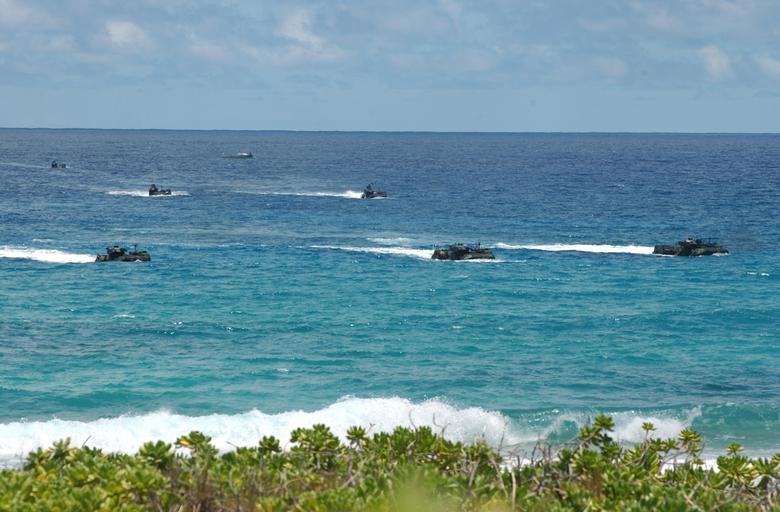 | Keywords: US Navy 040718-N-6551H-108 Amphibious Assault Vehicles (AAV) carrying U.S. Marines assigned to 3rd Battalion, 3rd Marine Regiment move in to secure the beach at Pyramid Rock and attack opposition forces in support of exercise.jpg en Kahuku Training Area Oahu Hawaii July 18 2004 - Amphibious Assault Vehicles AAV carrying U S Marines assigned to 3rd Battalion 3rd Marine Regiment move in to secure the beach at Pyramid Rock and attack opposition forces in support of exercise Rim of the Pacific RIMPAC 2004 RIMPAC is the largest international maritime exercise in the waters around the Hawaiian Islands This years exercise includes seven participating nations; Australia Canada Chile Japan South Korea the United Kingdom and the United States RIMPAC is intended to enhance the tactical proficiency of participating units in a wide array of combined operations at sea while enhancing stability in the Pacific Rim region U S Navy photo by Photographer's Mate 1st Class Michelle R Hammond RELEASED For more information go to <a href http //www cpf navy mil/RIMPAC2004 Target _BLANK >http //www cpf navy mil/RIMPAC2004</a>/ http //www navy mil/view_image asp id 16340 Photographer's Mate 1st Class Michelle R Hammond 2004-07-18 PD-USGov-Military-Navy 3d Bn 3d Mar 2004 RIMPAC Marine Corps Base Hawaii Amphibious Assault Vehicle Kahuku Beach |