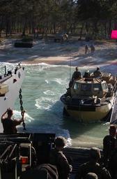 | Keywords: US Navy 040720-N-8500S-056 A Lighter Amphibious Resupply Cargo Vessel (LARC) checks the water level prior to the disembarking members of 3rd Battalion, 3rd Marine Regiment, Combat Assault Company.jpg en Bellows Air Force Base Hawaii July 20 2004 - A Lighter Amphibious Resupply Cargo Vessel LARC checks the water level prior to the disembarking members of 3rd Battalion 3rd Marine Regiment Combat Assault Company from a Landing Craft Utility LCU with Assault Craft Unit ONE ACU-1 attached to the amphibious assault ship USS Tarawa LHA 1 during exercise Rim of the Pacific RIMPAC 2004 RIMPAC is the largest international maritime exercise in the waters around the Hawaiian Islands This years exercise includes seven participating nations; Australia Canada Chile Japan South Korea the United Kingdom and the United States RIMPAC is intended to enhance the tactical proficiency of participating units in a wide array of combined operations at sea while enhancing stability in the Pacific Rim region U S Navy photo by Photographer's Mate 3rd Class Paula J Sato RELEASED For more information go to <a href http //www cpf navy mil/RIMPAC2004 Target _BLANK >http //www cpf navy mil/RIMPAC2004</a>/ 2004-07-20 http //www navy mil/view_image asp id 16612 U S Navy photo by Photographer's Mate 3rd Class Paula J Sato PD-USGov-Military-Navy 3d Bn 3d Mar 2004 RIMPAC RIMPAC 2004 LARC-V Landing craft utility |