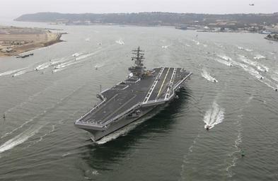 | Keywords: US Navy 040723-N-7615S-315 The Navy's newest and most technologically advanced aircraft carrier USS Ronald Reagan (CVN 76), enters San Diego harbor for a homeporting celebration, welcoming the ship to San Diego, Calif.jpg en San Diego Calif Jul 23 2004 - The Navy's newest and most technologically advanced aircraft carrier USS Ronald Reagan CVN 76 enters San Diego harbor for a homeporting celebration welcoming the ship to San Diego Calif and officially joining the U S Pacific Fleet The celebration will include various dignitaries including former First Lady Nancy Reagan members of the Congress state officials and celebrities Commanded by Capt James A Symonds the ship was commissioned in July 2003 and is completing a two-month transit around South America to her new homeport U S Navy photo by Photographer's Mate Airman Danielle Sosa RELEASED 2004-07-23 040723-N-7615S-315 Navy http //www navy mil/view_image asp id 16515 U S Navy photo by Photographer's Mate Airman Danielle Sosa PD-USGov-Military-Navy General views of USS Ronald Reagan CVN-76 030 Naval ship arrivals to Naval Air Station North Island Manning the rail on USS Ronald Reagan CVN-76 Aerial photographs of San Diego |