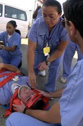 | Keywords: US Navy 040723-N-8977L-006 Navy Hospital Corpsmen and Medical Officers assess a car accident victim during a simulated extraction evolution.jpg en Los Angeles Calif July 23 2004 - Navy Hospital Corpsmen and Medical Officers assess a car accident victim during a simulated extraction evolution at the Los Angeles County University of Southern California USC Medical Center The students are part of an outreach cooperative training program between Navy Medicine and the medical center The Naval Trauma Training Center s NTTC mission is to provide trauma experience and knowledge to Naval medical personnel before they deploy The students from Naval Hospitals clinics and commands at Naval Installations around the world work in the emergency room operating room and intensive care unit to learn about the wide range of situations they may encounter when sent into the field U S Navy photo by Photographer s Mate 2nd Class Johansen Laurel RELEASED 2004-07-23 040723-N-8977L-006 Navy http //www navy mil/view_image asp id 16758 U S Navy photo by Photographer s Mate 2nd Class Johansen Laurel PD-USGov-Military-Navy Hospital Corpsman Los Angeles County+USC Medical Center |