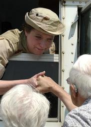 | Keywords: US Navy 040727-N-5576W-013 Naval Reservist Chief Hospital Corpsman Barbara Bays, takes one more private moment with her parents, prior to departing Naval Station Great Lakes for the Middle East.jpg en Naval Station Great Lakes Ill July 27 2004 - Naval Reservist Chief Hospital Corpsman Barbara Bays takes one more private moment with her parents prior to departing Naval Station Great Lakes for the Middle East Bays along with 74 other members assigned to the Navy Reserve Cargo Handling Battalion Seven CHB-7 were called to active duty from Naval Station Great Lakes in support of Operation Iraqi Freedom OIF Sailors assigned to CHB-7 along with 495 Navy reservists from 33 Reserve centers across the country are part of the Naval Expeditionary Logistics Support Force CHB-7 will relieve expeditionary forces who deployed to Iraq in January 2004 U S Navy photo by Photographer s Mate 1st Class Michael Worner RELEASED 2004-07-27 040727-N-5576W-013 Navy http //www navy mil/view_image asp id 16699 U S Navy photo by Photographer s Mate 1st Class Michael Worner PD-USGov-Military-Navy Naval Station Great Lakes |