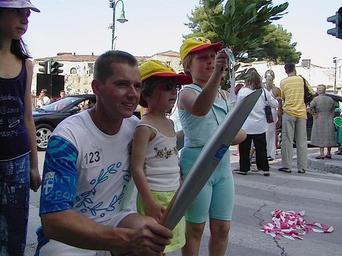 | Keywords: US Navy 040731-N-6243C-001 Lt. Cmdr. Demetries A. Grimes poses for a picture with young Olympic fans. Grimes, a Greek-American, ran in the torch relay held in Larissa, Greece, on Saturday, July 24, 2004.jpg en Souda Bay Crete Greece July 31 2004 Lt Cmdr Demetries A Grimes poses for a picture with young Olympic fans Grimes a Greek-American ran in the torch relay held in Larissa Greece on Saturday July 24 2004 The only sailor participating in Olympic festivities Grimes application for the torch-running spot included an essay on his beliefs Olympic values of peace friendly competition and brotherhood U S Navy photo by Journalist 3rd Class Jeffrey S Campbell RELEASED 2004-07-31 040731-N-6243C-001 Navy http //www navy mil/view_image asp id 17109 U S Navy photo by Journalist 3rd Class Jeffrey S Campbell PD-USGov-Military-Navy Torch bearers 2004 Summer Olympics torch relay July 2004 in Greece Images from US Navy location Souda Bay Crete 2004 Summer Olympics cauldron |