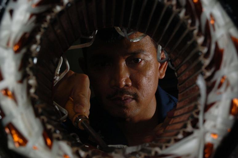 | Keywords: US Navy 040806-N-0684R-158 Electrician's Mate 1st Class Solomon Canonizado from Oxnard, Calif., chisels out a paper seal inside the core of an electric motor.jpg en Western Pacific Aug 6 2004 - Electrician's Mate 1st Class Solomon Canonizado from Oxnard Calif chisels out a paper seal inside the core of an electric motor in the motor rewind shop aboard the aircraft carrier USS John C Stennis CVN 74 Stennis and Carrier Air Wing Fourteen CVW-14 are at sea on a regularly scheduled deployment in the Western Pacific U S Navy photo by Photographer's Mate Airman Ron Reeves RELEASED 2004-08-06 040806-N-0684R-158 Navy http //www navy mil/view_image asp id 16880 U S Navy photo by Photographer's Mate Airman Ron Reeves PD-USGov-Military-Navy Images from US Navy location Western Pacific Electrician's Mate |