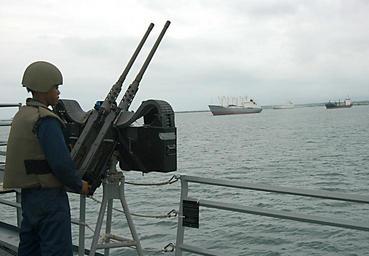 | Keywords: US Navy 040810-N-0507C-003 unner^rsquo,s Mate 3rd Class Ali Cowden mans the twin .50-caliber gun while the guided missile frigate USS Crommelin (FFG 37).jpg en Colon Panama Aug 10 2004 - Gunner s Mate 3rd Class Ali Cowden mans the twin 50-caliber gun while the guided missile frigate USS Crommelin FFG 37 pulls out of Colon Panama to participate in the maritime portion of PANAMAX 2004 Crommelin along with Naval forces from eight countries is participating in PANAMAX 2004 a naval exercise designed to build up a coalition response to security threats against the Panama Canal PANAMAX is conducted under the direction of Commander Naval Forces Southern Command and involves the identification monitoring and interdiction of vessels posing a simulated terrorist threat to the Canal The multinational force includes surface and air assets from Argentina Colombia Chile Dominican Republic Honduras Panama Peru and the United States operating in the north and south approaches to the Canal PANAMAX s realistic scenario develops not only interoperability among naval forces but also joint and inter-agency interoperability as the naval forces work together with other services and agencies of Panama to ensure the safety of the Canal and to protect freedom of navigation U S Navy photo by Lt Ligia Cohen RELEASED 2004-08-10 040810-N-0507C-003 Navy http //www navy mil/view_image asp id 16961 U S Navy photo by Lt Ligia Cohen PD-USGov-Military-Navy United States Navy in Colon Panama USS Crommelin FFG-37 PANAMAX 2004 |