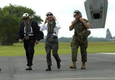 | Keywords: US Navy 040811-D-9051M-002 Secretary of the Navy, Gordon R. England.jpg en Marine Corps Air Station New River N C Aug 11 2004 - Secretary of the Navy Gordon R England center exits an MV-22 Osprey after a test flight with Marine Tilt-Rotor Test and Evaluation Squadron Two Two VMX-22 DoD photo Sgt Andrew W Miller RELEASED 2004-08-11 040811-D-9051M-002 Navy http //www navy mil/view_image asp id 17017 U S Navy photo PD-USGov-Military-Navy Marine Corps Air Station New River Gordon R England VMX-22 |