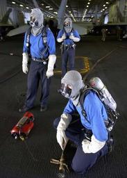 | Keywords: US Navy 040813-N-0057P-021 Sailors assigned to a fire fighting party aboard the aircraft carrier USS Abraham Lincoln (CVN 72) don personal protective equipment and Scott Air Packs, as they stand-by in case of an emergency durin.jpg en Pacific Ocean Aug 13 2004 - Sailors assigned to a fire fighting party aboard the aircraft carrier USS Abraham Lincoln CVN 72 don personal protective equipment and Scott Air Packs as they stand-by in case of an emergency during flight operations Lincoln is currently conducting operations in preparation for deployment next year U S Navy photo by Photographer's Mate 2nd Class Seth C Peterson RELEASED 2004-08-13 040813-N-0057P-021 Navy http //www navy mil/view_image asp id 17074 U S Navy photo by Photographer's Mate 2nd Class Seth C Peterson PD-USGov-Military-Navy Aboard USS Abraham Lincoln CVN-72 |