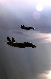 | Keywords: US Navy 040814-F-6740T-163 A pair F-14B Tomcats fly in loose formation over Iraq.jpg en Iraqi Air Space Aug 14 2004 - A pair F-14B Tomcats assigned to the Jolly Rogers of Fighter Squadron One Zero Three VF-103 fly in loose formation over Iraq during a combat mission in support of Operation Iraqi Freedom OIF VF-103 is currently assigned to Carrier Air Wing Seventeen CVW-17 embarked aboard the aircraft carrier USS John F Kennedy CV 67 This is the final F-14 Tomcat deployment for VF-103 as they will be transferring to the F/A-18F Super Hornet when they return from deployment U S Air Force photo by Staff Sgt Lee O Tucker RELEASED 2004-08-14 040814-F-6740T-163 Navy http //www navy mil/view_image asp id 17262 U S Navy photo PD-USGov-Military-Navy Images from US Navy location Iraqi Air Space Aircraft formation flight of F-14B Tomcat Aerial photographs of F-14 Tomcat in flight Fighter Squadron 103 United States Navy |