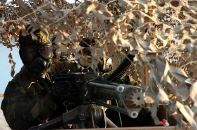 | Keywords: US Navy 040822-N-9712C-002 A Seabee assigned to Naval Mobile Construction Battalion Four Zero (NMCB-40), mans a machine gun after donning Mission Oriented Protective Posture (MOPP) gear during a simulated Chemical-Biological at.jpg en Fort Hunter Liggett Calif Aug 22 2004 - A Seabee assigned to Naval Mobile Construction Battalion Four Zero NMCB-40 mans a machine gun after donning Mission Oriented Protective Posture MOPP gear during a simulated Chemical/Biological attack NMCB-40 is participating in Exercise Bearing Duel 2004 designed to provide the unit with an opportunity to train in realistic field environments while preparing for contingency operations and future deployment U S Navy photo by Photographer's Mate Airman John P Curtis RELEASED 2004-08-22 040822-N-9712C-002 Navy http //www navy mil/view_image asp id 17955 U S Navy photo by Photographer's Mate Airman John P Curtis PD-USGov-Military-Navy Fort Hunter Liggett Naval Mobile Construction Battalion 40 Browning M2 of the US Navy Camouflage nettings Mission Oriented Protective Posture People wearing gas masks Operation Bearing Duel 2004 M40 Field Protective Mask |