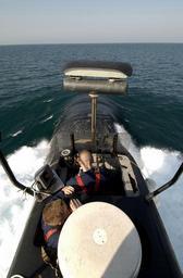 | Keywords: US Navy 040831-N-1348L-046 Machinist^rsquo,s Mate 3rd Class Seth Buehnerkemper stands watch looking for contacts from the bridge of the Los Angeles-class attack submarine USS Toledo (SSN 769).jpg en Arabian Gulf Aug 31 2004 - Machinist s Mate 3rd Class Seth Buehnerkemper stands watch looking for contacts from the bridge of the Los Angeles-class attack submarine USS Toledo SSN 769 as the Officer of the Deck OOD Lt j g Daniel Cavanagh uses a handheld global positioning system GPS in addition to the submarine s portable commercial radar display shortly after getting underway from a 10-day port visit to the Kingdom of Bahrain The crew used the port visit as a working port to perform a mid-deployment upkeep Toledo is part of USS John F Kennedy CV 67 Carrier Strike Group CSG and is on deployment in support of the sovereign Iraqi government U S Navy photo by Photographer's Mate 1st Class David C Lloyd RELEASED 2004-08-31 040831-N-1348L-046 Navy http //www navy mil/view_image asp id 17501 U S Navy photo by Photographer's Mate 1st Class David C Lloyd PD-USGov-Military-Navy USS Toledo SSN-769 Submarines in motion Submarine sails |