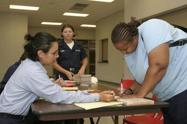 | Keywords: US Navy 040915-N-4204E-021 Airman Kiesha Nanchett, a student assigned to Naval Air Technical Training Center (NATTC), assists Pensacola resident Sanda Robinson with the Red Cross registration.jpg en Pensacola Fla Sept 15 2004 - Airman Kiesha Nanchett a student assigned to Naval Air Technical Training Center NATTC assists Pensacola resident Sanda Robinson with the Red Cross registration at the West Florida High School shelter Forty-nine Navy personnel assisted at the shelter as Hurricane Ivan approached the Florida Panhandle Ivan made landfall at Gulf Shores Ala at approximately 0315 EST with winds of 130 MPH Twelve deaths are blamed on Ivan as it came ashore U S Navy photo by Photographer's Mate 2nd Class Mark A Ebert RELEASED 2004-09-15 040915-N-4204E-021 Navy http //www navy mil/view_image asp id 17675 U S Navy photo by Photographer's Mate 2nd Class Mark A Ebert PD-USGov-Military-Navy Images from US Navy location PENSACOLA Fla |