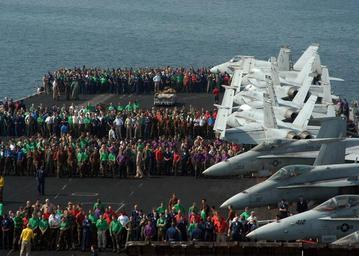 | Keywords: US Navy 040921-N-8704K-001 All hands participate in a Foreign Object Damage (FOD) walk down on the flight deck aboard the conventionally powered aircraft carrier US John F. Kennedy (CV 67).jpg en Persian Gulf Sept 21 2004 - All hands participate in a Foreign Object Damage FOD walk down on the flight deck aboard the conventionally powered aircraft carrier US John F Kennedy CV 67 This task is performed each day and night before flight operations to ensure the flight deck is clear of all foreign objects which could be ingested by jet aircraft damaging expensive equipment or place flight deck personnel in danger Kennedy and embarked Carrier Air Wing Seventeen CVW-17 are currently on deployment in the 5th Fleet area of responsibility in support of Operation Iraqi Freedom OIF Units in the Kennedy Carrier Strike Group are working closely with Multi-National Corps-Iraq and Iraqi forces to bring stability to the sovereign government of Iraq U S Navy photo by Photographer's Mate 3rd Class Joshua Karsten RELEASED 2004-09-21 040921-N-8704K-001 Navy http //www navy mil/view_image asp id 17790 U S Navy photo by Photographer's Mate 3rd Class Joshua Karsten PD-USGov-Military-Navy United States Navy in the Persian Gulf Foreign Object Damage walk downs |