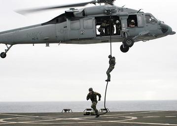 | Keywords: US Navy 040927-N-0376G-001 Explosive Ordnance Disposal (EOD) members repel from an MH-60S Knighthawk.jpg en Pacific Ocean Sept 27 2004 - Explosive Ordnance Disposal EOD members repel from an MH-60S Knighthawk assigned to the Gunbearers of Helicopter Combat Support Squadron Eleven HC-11 Detachment Nine to the flight deck aboard the fast combat supply ship USS Camden AOE-2 during fast-rope exercises Camden was operating with the Nimitz-class aircraft carrier USS Carl Vinson CVN 70 during Composite Training Unit Exercise COMTUEX U S Navy photo by Photographer's Mate 3rd Class Travis Gee RELEASED 2004-09-27 040927-N-0376G-001 Navy http //www navy mil/view_image asp id 18225 U S Navy photo by Photographer's Mate 3rd Class Travis Gee PD-USGov-Military-Navy United States Navy Explosive Ordnance Disposal Aboard USS Carl Vinson CVN-70 Fast roping Helicopter Combat Support Squadron 11 United States Navy |