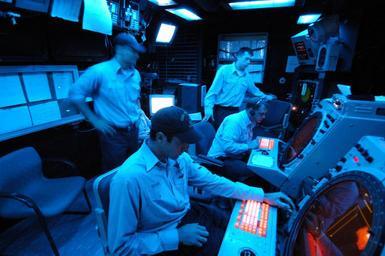 | Keywords: US Navy 041019-N-7945K-002 Air Traffic Controller 3rd Class Jeff Gessler, center, watches an approaching aircraft on his radar screen during a Federal Aviation Administration (FAA) Certification test.jpg en Norfolk Va Oct 19 2004 - Air Traffic Controller 3rd Class Jeff Gessler center watches an approaching aircraft on his radar screen during a Federal Aviation Administration FAA Certification test using the U S military's Tactical Air Navigation System TACAN aboard the amphibious assault ship USS Nassau LHA 4 U S Navy photo by Photographer's Mate Airman Andrew King RELEASED 2004-10-19 041019-N-7945K-002 Navy http //www navy mil/view_image asp id 18700 U S Navy photo by Photographer's Mate Airman Andrew King PD-USGov-Military-Navy Air Traffic Controller United States Navy Naval Station Norfolk Aboard USS Nassau LHA-4 |