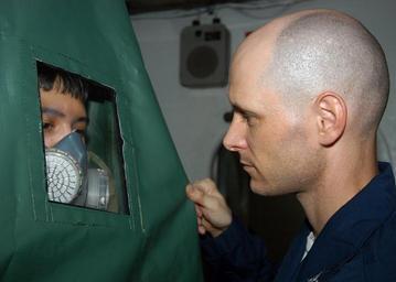 | Keywords: US Navy 041021-N-1205W-001 Machinist Mate 1st Class Michael Haviland, assigned to the Safety Department, performs a fit test on a Sailor for a respirator aboard the conventionally powered aircraft carrier USS John F. Kennedy (C.jpg en Arabian Gulf Oct 21 2004 - Machinist Mate 1st Class Michael Haviland assigned to the Safety Department performs a fit test on a Sailor for a respirator aboard the conventionally powered aircraft carrier USS John F Kennedy CV 67 Kennedy and embarked Carrier Air Wing Seventeen CVW-17 are currently deployed to the 5th Fleet Area or Responsibility AOR in support of Operation Iraqi Freedom OIF U S Navy photo by Photographer's Mate 2nd Class Regina Wiss RELEASED 2004-10-21 041021-N-1205W-001 Navy http //www navy mil/view_image asp id 18357 U S Navy photo by Photographer's Mate 2nd Class Regina Wiss PD-USGov-Military-Navy Aboard USS John F Kennedy CV-67 |