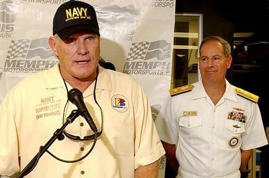 | Keywords: US Navy 041022-N-5862D-095 Commander, Navy Recruiting Command, Rear Adm. Jeff Fowler, right, and NFL Hall of Fame Quarterback Terry Bradshaw, co-owner of the FitzBradshaw racing team, takes questions during a press conference.jpg en Millington Tenn Oct 22 2004 Commander Navy Recruiting Command Rear Adm Jeff Fowler right and NFL Hall of Fame Quarterback Terry Bradshaw co-owner of the FitzBradshaw racing team takes questions during a press conference at Memphis Motor Sports Park Fowler announced that the Navy would extend its partnership with NASCAR and FitzBradshaw for the 2005 season With this contract renewal the Navy will be a primary sponsor for a second full season Stremme the 2003 Busch Series Rookie of the Year will take the wheel in the Dodge Charger U S Navy photo by Chief Photographer s Mate Chris Desmond RELEASED 2004-10-22 041022-N-5862D-095 Navy http //www navy mil/view_image asp id 18401 U S Navy photo by Chief Photographer s Mate Chris Desmond PD-USGov-Military-Navy Military in Tennessee Terry Bradshaw Jeffrey Fowler |
