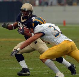 | Keywords: US Navy 041030-N-9693M-026 Delaware Blue Hen's defensive back Kyle Campbell tries to block U.S. Naval Academy Midshipman 3rd Class Trey Hines on a rushing attempt in the 2nd quarter of play.jpg en Annapolis Md Oct 30 2004 Delaware Blue Hen's defensive back Kyle Campbell tries to block U S Naval Academy Midshipman 3rd Class Trey Hines on a rushing attempt in the 2nd quarter of play At half-time Navy led the Blue Hens 14-10 at Navy-Marine Corps Memorial Stadium in Annapolis Md U S Navy photo by Damon J Moritz RELEASED 2004-10-30 041030-N-9693M-026 Navy http //www navy mil/view_image asp id 18528 U S Navy photo by Damon J Moritz PD-USGov-Military-Navy U S Naval Academy Midshipmen vs Delaware Blue Hens Oct 30 2004 |