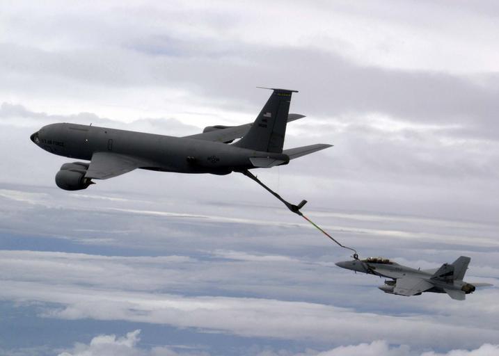 | Keywords: US Navy 041104-N-3799S-001 An F-A-18F Super Hornet conducts in-flight refueling from an U.S. Air Force KC-135 Stratotanker assigned to the Alaska Air National Guard.jpg en Pacific Ocean Nov 4 2004 - An F/A-18F Super Hornet assigned to the Bounty Hunters of Strike Fighter Squadron Two VFA-2 conducts in-flight refueling from an U S Air Force KC-135R Stratotanker assigned to the Alaska Air National Guard VFA-2 is assigned to Carrier Air Wing Two CVW-2 currently embarked aboard the Nimitz-class aircraft carrier USS Abraham Lincoln CVN 72 Lincoln is on a scheduled deployment to the Western Pacific Ocean U S Navy photo by Lt Perry Solomon RELEASED 2004-11-04 041104-N-3799S-001 Navy http //www navy mil/view_image asp id 18638 U S Navy photo by Lt Perry Solomon PD-USGov-Military-Navy F/A-18F Super Hornet in flight Strike Fighter Squadron 2 United States Navy Boeing KC-135 Stratotanker Aerial refueling of F/A-18F Super Hornet 168th Air Refueling Wing Alaska Air National Guard |
