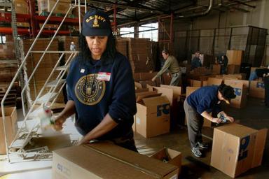 | Keywords: US Navy 041106-N-2383B-153 Pentagon volunteers, Senior Chief Petty Officer Ebonnee Dinkins, left, and Chief Petty Officer Carol Bundy, right, prepare boxes for special care packages that will be sent to deployed service members.jpg en Fort Belvoir Va Nov 6 2004 Pentagon volunteers Senior Chief Petty Officer Ebonnee Dinkins left and Chief Petty Officer Carol Bundy right prepare boxes for special care packages that will be sent to deployed service members overseas Special care packages are consolidated in volunteer programs called stuffing parties where they line up and package items donated by individuals organizations and corporations for delivery to service members worldwide The United Service Organization USO has been a bridge between the American people and the U S military since before World War II Its mission is to provide morale welfare and recreational-type services to our men and women in uniform and represent the American people by extending a touch of home to the military U S Navy photo by Chief Photographer's Mate Johnny Bivera RELEASED 2004-11-06 041106-N-2383B-153 Navy http //www navy mil/view_image asp id 18689 U S Navy photo by Chief Photographer's Mate Johnny Bivera PD-USGov-Military-Navy Fort Belvoir Care packages |