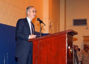 | Keywords: US Navy 041121-N-1825E-002 Secretary of the Navy (SECNAV), the Honorable Gordon R. England, addresses more than 300 officers and enlisted Sailors and Marines in Manama, Bahrain.jpg en Manama Bahrain Nov 21 2004 - Secretary of the Navy SECNAV the Honorable Gordon R England addresses more than 300 officers and enlisted Sailors and Marines in Manama Bahrain Secretary England opened the floor for questions and discussed education computer training and balancing professional and personal goals He is scheduled to visit seven other countries during his 10-day trip to the Middle East including Egypt Djibouti and Kuwait U S Navy photo by Journalist Seaman Joseph Ebalo RELEASED 2004-11-21 041121-N-1825E-002 Navy http //www navy mil/view_image asp id 19191 U S Navy photo by Journalist Seaman Joseph Ebalo PD-USGov-Military-Navy US Navy in Manama Bahrain |